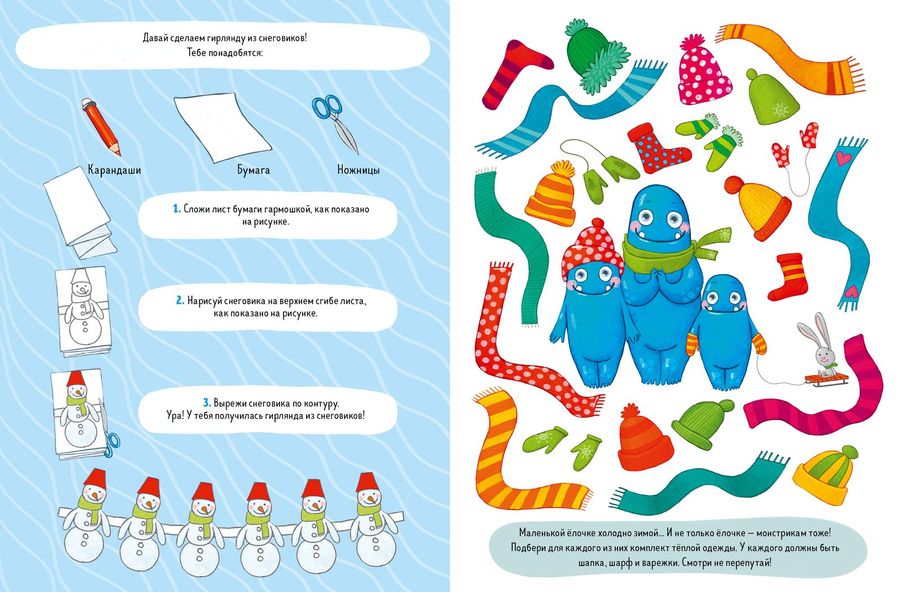 Книга «Монстрики встречают Новый год» познакомит ребенка с милейшими монстриками, в компании которых зимние праздники пролетят незаметно. Монстрик Мома, как и ваш малыш, очень любит зиму и просто обожает разгадывать ребусы, решать задачки и головоломки, раскрашивать, искать отличия и сходства, играть в «найди и покажи». Вместе вы покатаетесь на лыжах, коньках, санках, выпьете вкусное какао с зефирками и слепите снеговика.