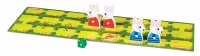 Игроки поочередно бросают кубик и двигаются к цели. Кролики не просто ходят с поля на поле, но обязательно перепрыгивают друг через друга.