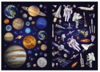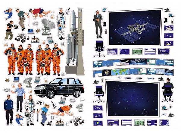 - Более 300 наклеек с изображениями, связанными с космосом, и красочные страницы с фонами для заполнения.