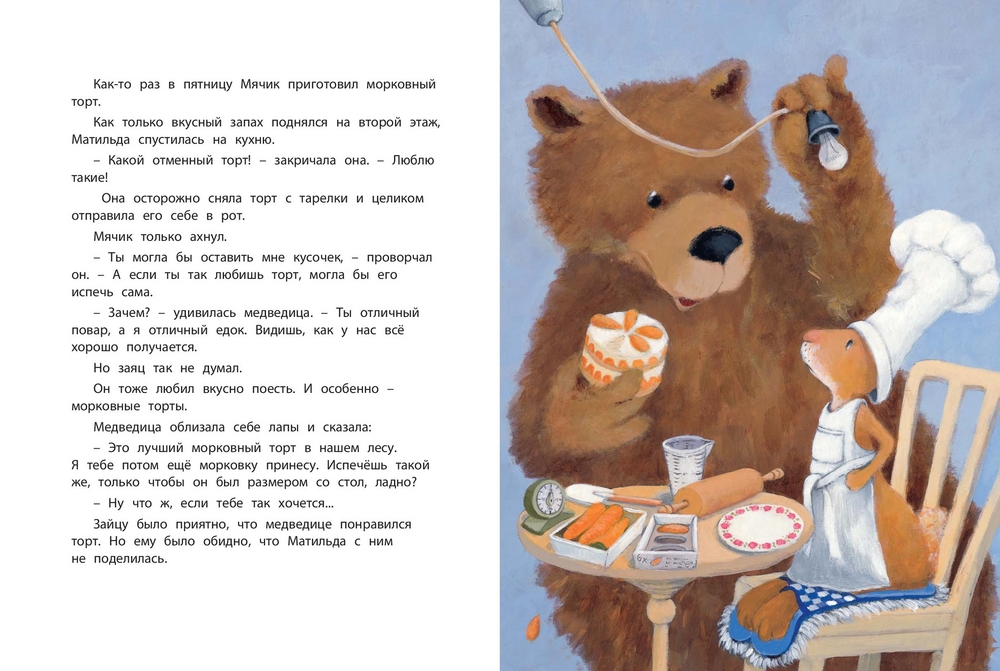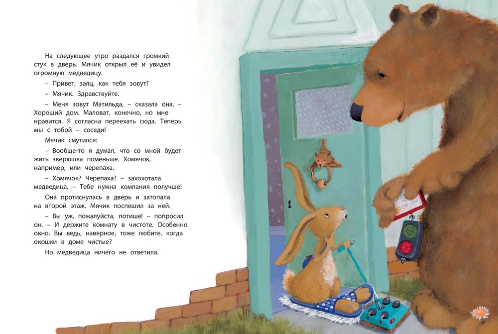 Что делать, если в одном доме поселились такие разные жильцы: один – чистюля и тихоня, а другой не слишком заботится о порядке и любит пошуметь? Оказывается, даже у таких соседей может возникнуть настоящая крепкая дружба! Забавную сказку о том, как поладили такие непохожие заяц и медведица, придумали и нарисовали немецкие авторы Криста Кемптер и Фрауке Вельдин.