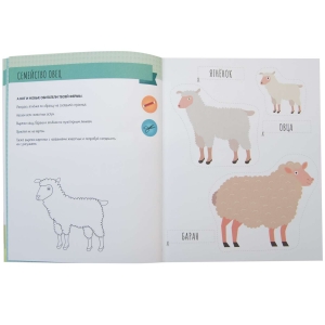 Красочная книга-активити с наклейками «На ферме» предназначена для развития логического мышления и познавательных навыков в игровой форме.