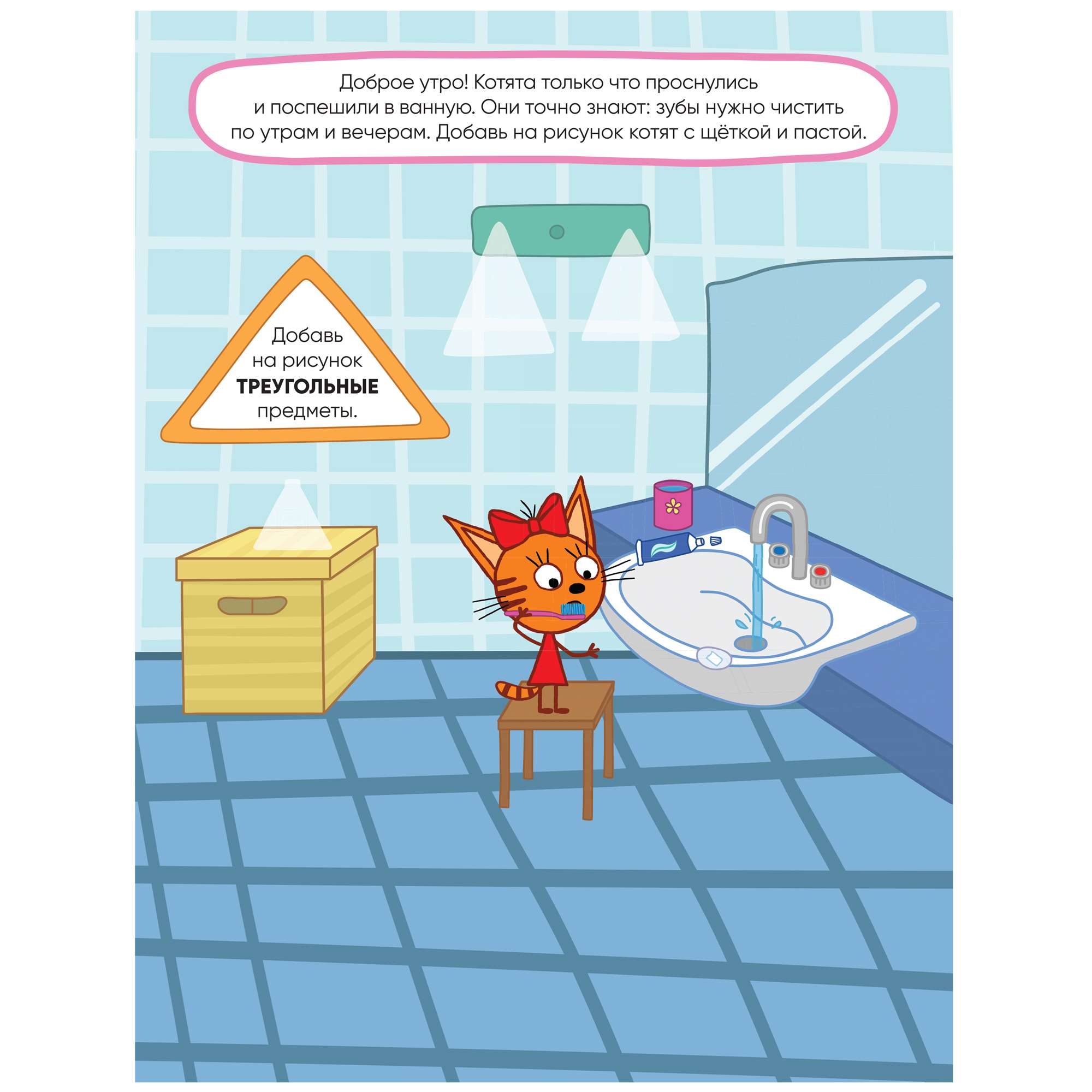 Благодаря удобному формату заниматься по книге «Наш день» из серии «Три кота. Развивающие наклейки» можно где угодно: дома, в поездке, гостях и на прогулке.