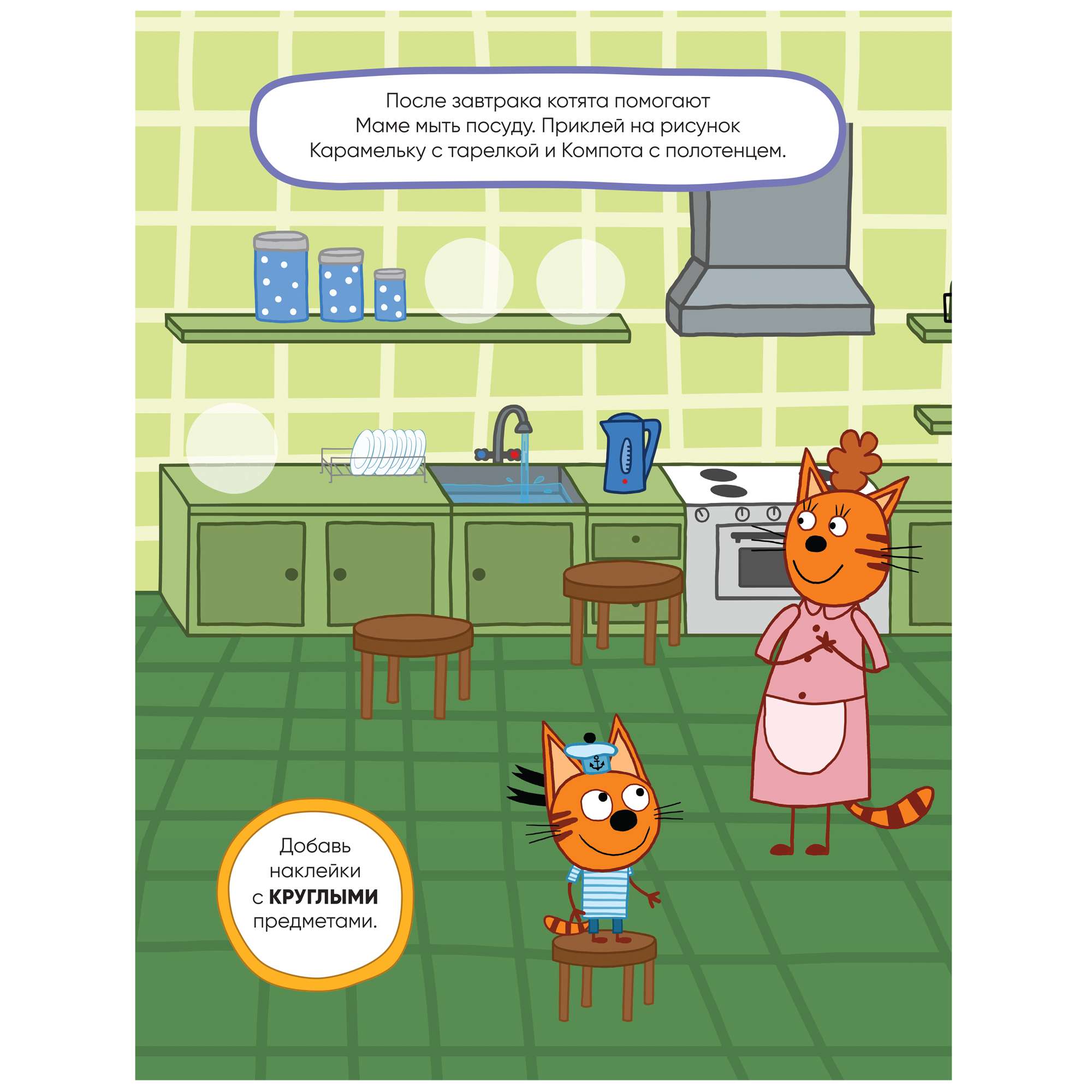 Наш день (Три кота. Развивающие наклейки), книга с многоразовыми наклейками