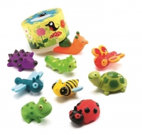 - 9 животных (бабочка, божья коровка, пчела, улитка, еж, гусеница, стрекоза, черепаха),коробочка для того, чтобы прятать фигурки животных, 15 монеток, инструкция.