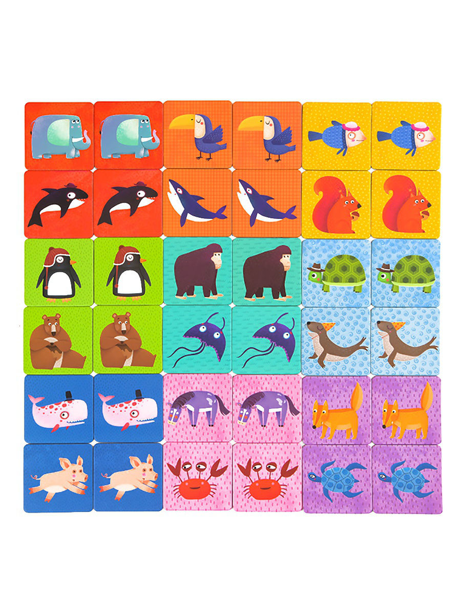 Настольная игра "Мемо-Животные" состоит из 36 карточек с парными изображениями животных. Игра развивает внимательность, мелкую моторику рук, логическое мышление, зрительное восприятие, усидчивость. В игровой форме малыш знакомится с разными животными.