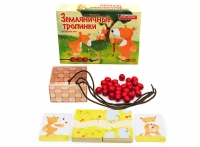 Собирай земляничку вместе с медвежатами и учись считать! Медвежата гуляют по лесным тропинкам и собирают землянику. Раз земляничка, два, три... Хочешь к ним присоединиться? Собранные ягодки надо пересчитать и достать столько же больших деревянных бусин из лукошка, а потом нанизать их на свой шнурочек.