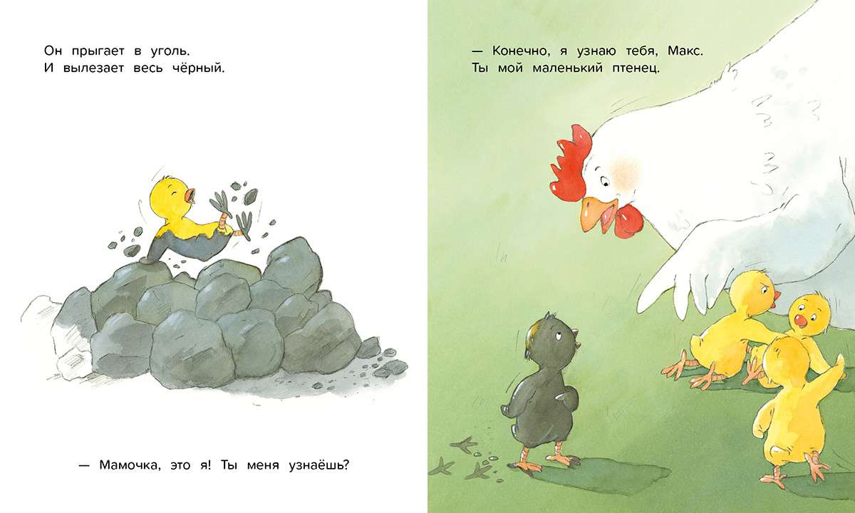 Макс — один из десяти птенцов, которые появились у мамы-наседки. Все они одинаковые: маленькие, жёлтые и пушистые. Максу становится интересно — как же мама отличит его от остальных птенцов? Может быть, если он будет плохо себя вести, это привлечёт её внимание? И Макс начинает свой праздник непослушания. Получится ли у него? И как поступит мама?