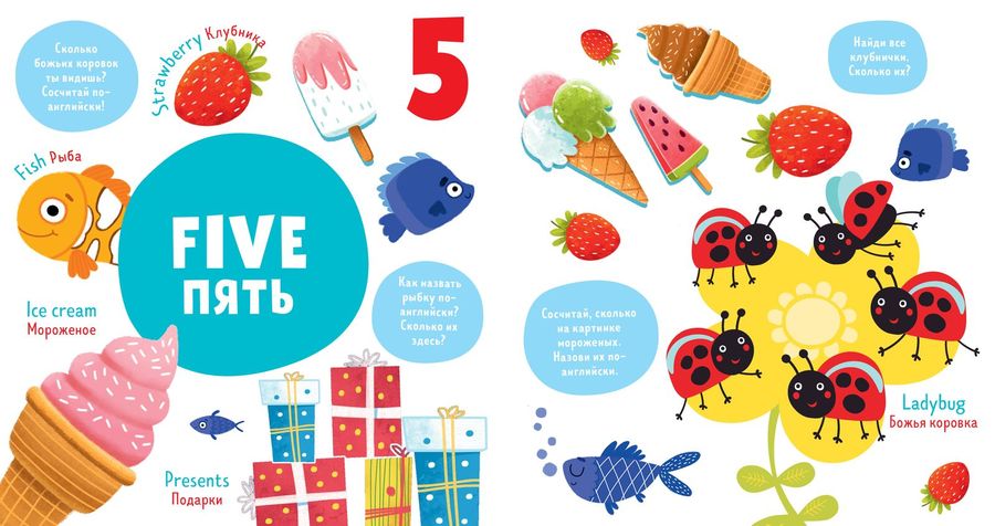 «Numbers. Цифры» — книжка-игра с веселыми заданиями, которая идеально подходит для первого знакомства с английским языком. С ее помощью малыш выучит новые слова, запомнит названия цветов и легко научится считать до 10 на русском и английском языках.Книга проверена методистами. По ней родители смогут заниматься с малышом самостоятельно, даже если сами не очень уверенно владеют английским языком. Отсканировав QR-код на обороте книги, вы получите доступ к бесплатному уроку по материалам книги от школы английского языка Skyeng.