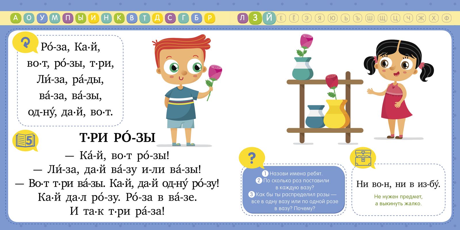 Ваш четырехлетний или пятилетний ребенок еще не очень уверенно читает? Тогда букварь поможет и ему. Если трехлетние малыши пройдут букварь за полгода-год, то более взрослому ребенку понадобится всего три-четыре месяца, после чего он с удовольствием будет читать, так как эта веселая книжка привьет ему интерес и любовь к чтению.