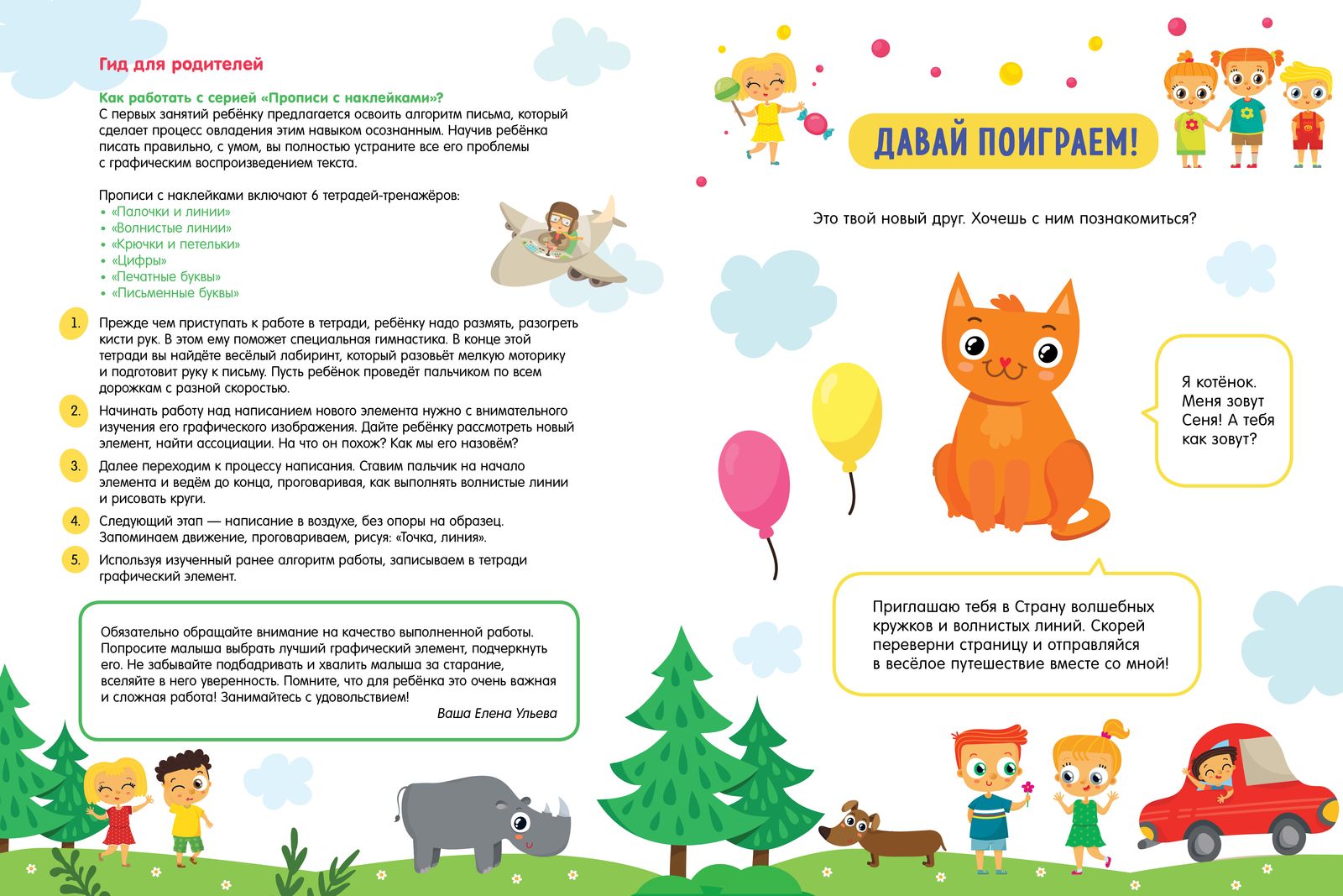Серия «Обучение в сказках» — с помощью прописей с наклейками ваш ребенок подготовится к чтению и письму в процессе веселой игры! В этих тетрадях-тренажерах собрано 100 увлекательных игр и заданий на каждый день.