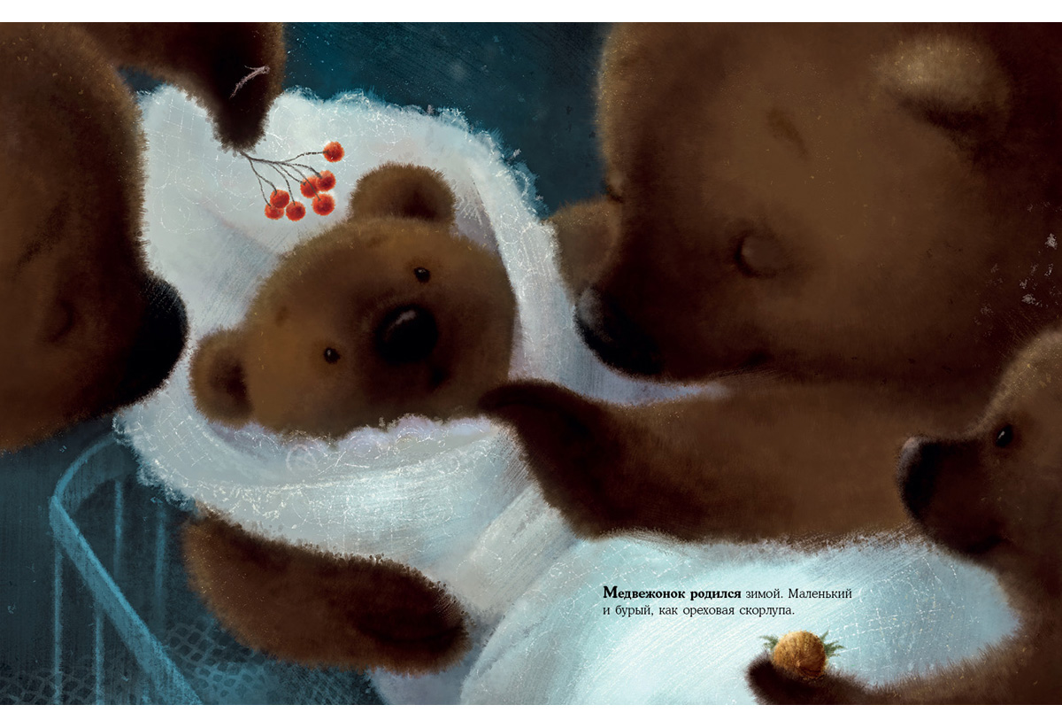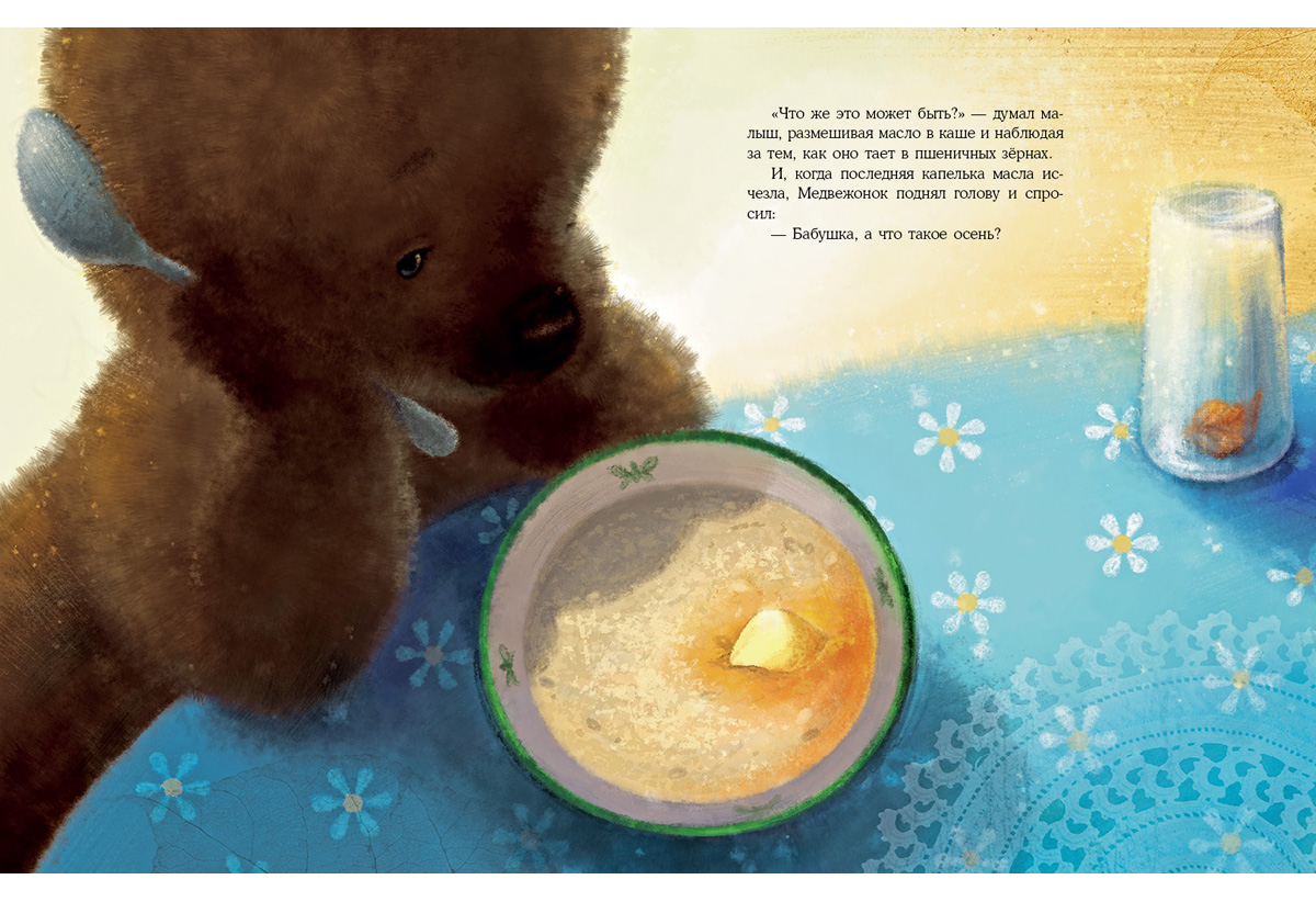 Маленький Медвежонок родился зимой и видел свой первый снег, а весной наблюдал, как набухают почки и ждал яркого летнего солнышка? А что же такое осень, о которой все так говорят? У бабушки-Медведицы осень медовая и сладкая, у мамы - хлопотливая, у старшего брата - увлекательная, а у папы-Медведя - красочная и вкусная, как грибной суп. Какая же осень у маленького Медвежонка?