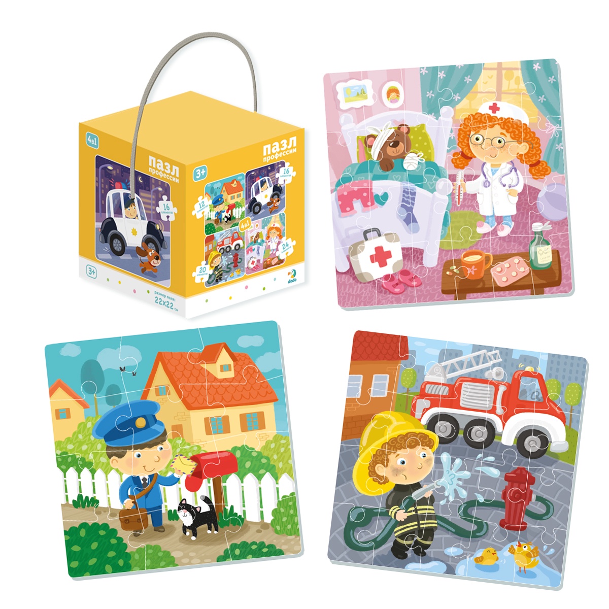 Пазл 4в1 Профессии представляет собой четыре отдельные картинки.