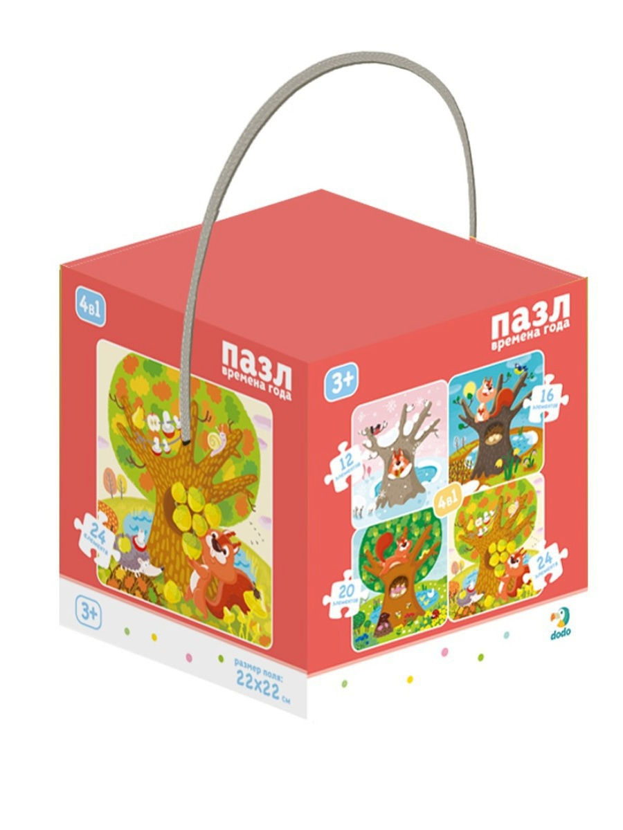 Пазл 4в1 Времена года представляет собой четыре отдельные картинки, которые показывают основные отличительные особенности каждого времени года.