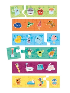 Играем в ассоциации с самыми маленькими, даже с тем, кто ещё не умеет говорить. Игра включает в себя 24 элемента, которые складываются в 6 ассоциативных рядов из предметов, которые есть в каждом доме. Малышу будет интересно и весело собирать красочные картинки в линии. В процессе игры ребёнок тренирует память, развивает мышление и выстраивает взаимосвязи между предметами. Крупные элементы пазла выполнены плавными изгибами и легко соединяются между собой.