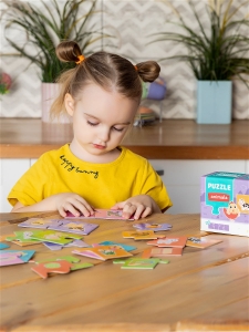 Играем в ассоциации с самыми маленькими, даже с тем, кто ещё не умеет говорить. Игра включает в себя 24 элемента, которые складываются в 6 ассоциативных рядов из предметов и зверят, которых знает каждый малыш. В процессе игры ребёнок тренирует память, развивает мышление и выстраивает взаимосвязи между предметами и зверятами. Крупные элементы пазла выполнены плавными изгибами и легко соединяются между собой. Каждая линия оформлена в одной цветовой гамме.