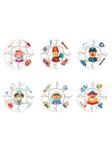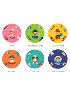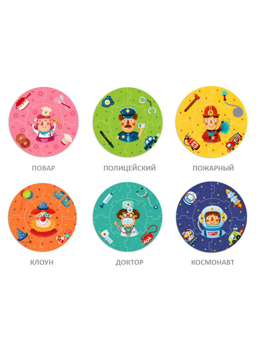 Пазл "Профессии" от компании MiDeer состоит из 30 крупных элементов, выполненных из плотного картона. В пазле представлены 6 профессий: повар, полицейский, пожарный, космонавт, клоун, врач. Каждая профессия собирается отдельно. Внимание, паз двусторонний! Каждой профессии свойственен определенный инвентарь, например для врача - шприц, для полуцейского - фуражка, для клоуна - шары и т.д., с одной стороны каждая профессия выкрашена в один цвет, выбрав профессию ваш малыш собирает инвентарь к ней, это делать легко, так как если полицейский изображен на зеленом фоне, то и его инвентарь так же изображен на зеленом фоне. Перевернув пазлы на другую сторону все профессии будут на белом фоне, и вот тогда малышу надо будет подумать, какой инвентарь кому пригодится. Отличный пазл, благодаря которому ваш ребенок изучит профессии, и инвентарь, а так же потренирует свою память. Пазлы развивают логику, усидчивость, мелкую моторику, внимание.