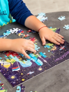 Пазл Москва состоит из 120 элементов. После того, как ребенок найдет каждой детали свое место, соберет элементы воедино, его глазам предстанет восхитительная картина столицы России с ее главными достопримечательностями. На игровом полотне ребенок увидит Московский Кремль, Красную площадь, Храм Василия Блаженного, Москву-Сити и многое другое. Размер собранного пазла 32 на 32 см.