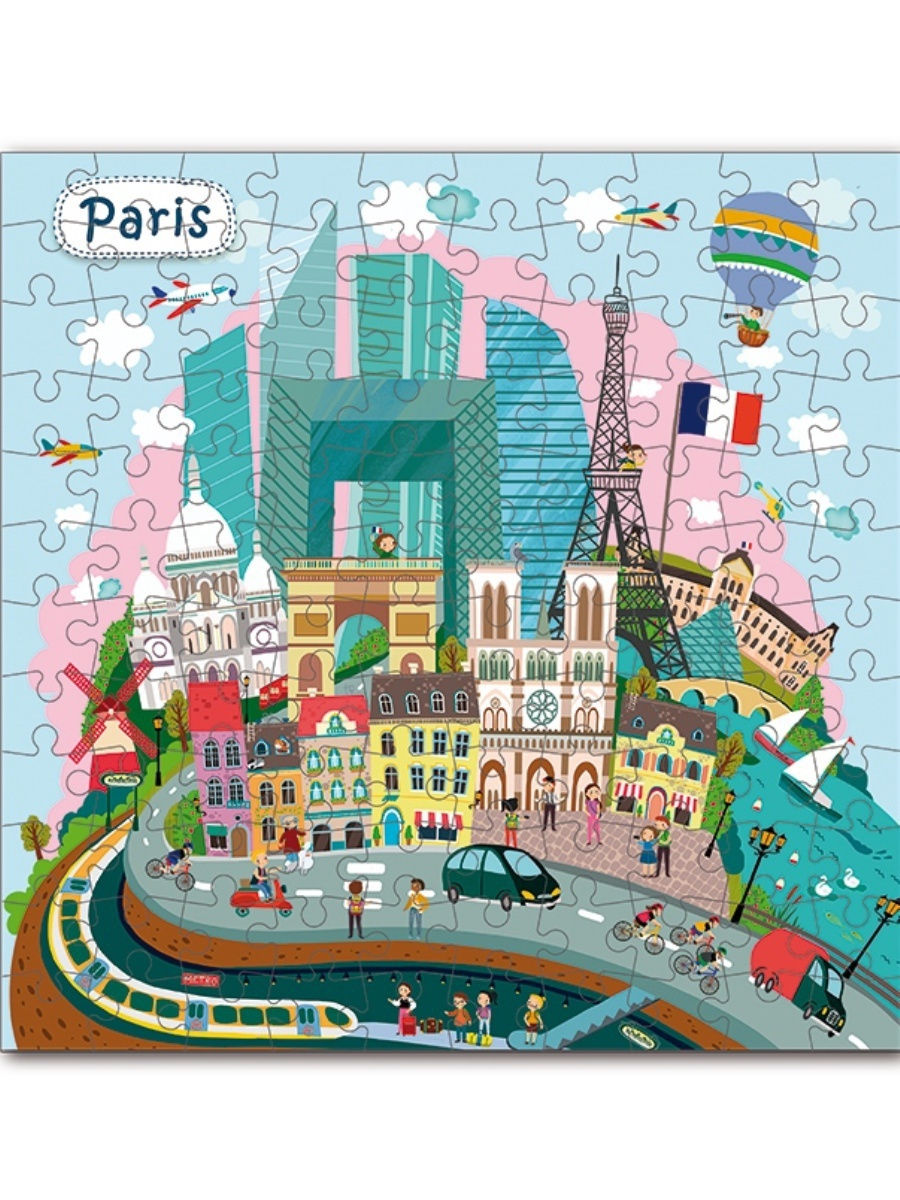 Пазл Париж состоит из 120 мелких деталей. Чтобы собрать красочную картину, ребенку необходимо быть очень внимательным, усидчивым и аккуратным. После того, как иллюстрация будет готова, на ней можно будет увидеть главные достопримечательности Франции, такие как Эйфелева башня, Собор Парижской Богоматери, храм Базилика Сакре-Кёр и многое другое. Размер собранного пазла 32 на 32 см.