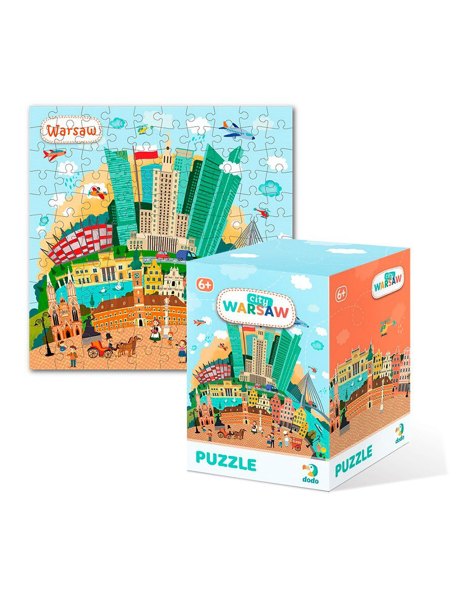 Пазл с изображением столицы Польши, на котором изображены главные достопримечательности города. Состоит из 120 элементов, размер собранного пазла 32 на 32 см. Пазл развивает внимательность, логику и мелкую моторику ребенка.