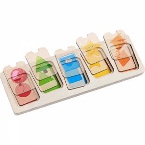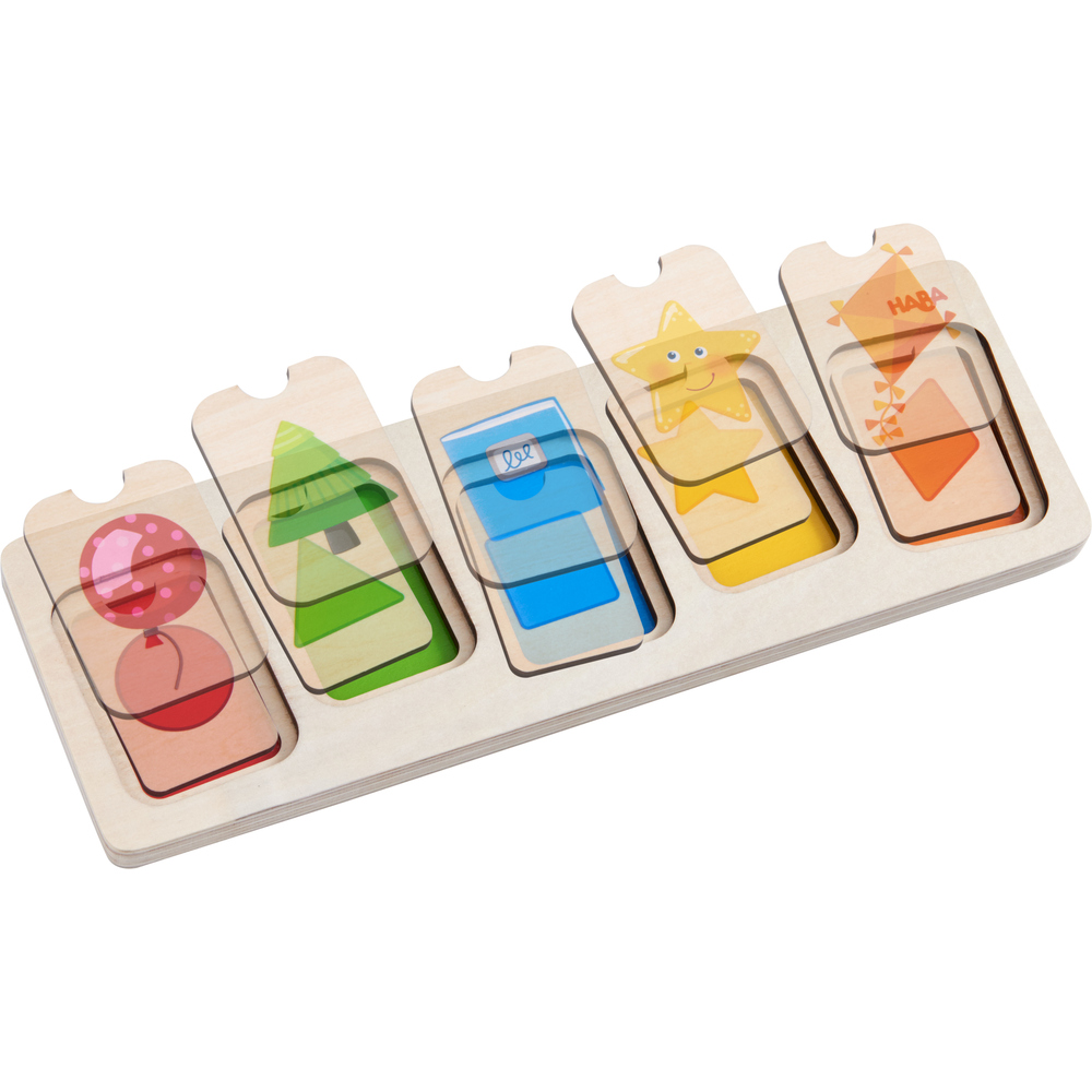 Пазл - трехлойный, за каждый слоем скрываются формы разных цветов и символы, им соответствующие.