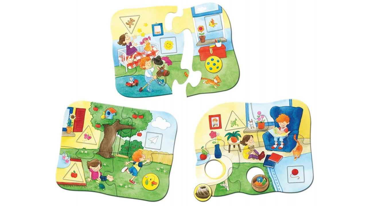 Собирай пазлы по велению сердца, или смешай и сопоставь сюжеты, чтобы создать яркие сцены из домашней жизни. Прежде всего соедини пазлы из трех разных сцен. Затем вставь круглые, треугольные и квадратные части, где они подходят.