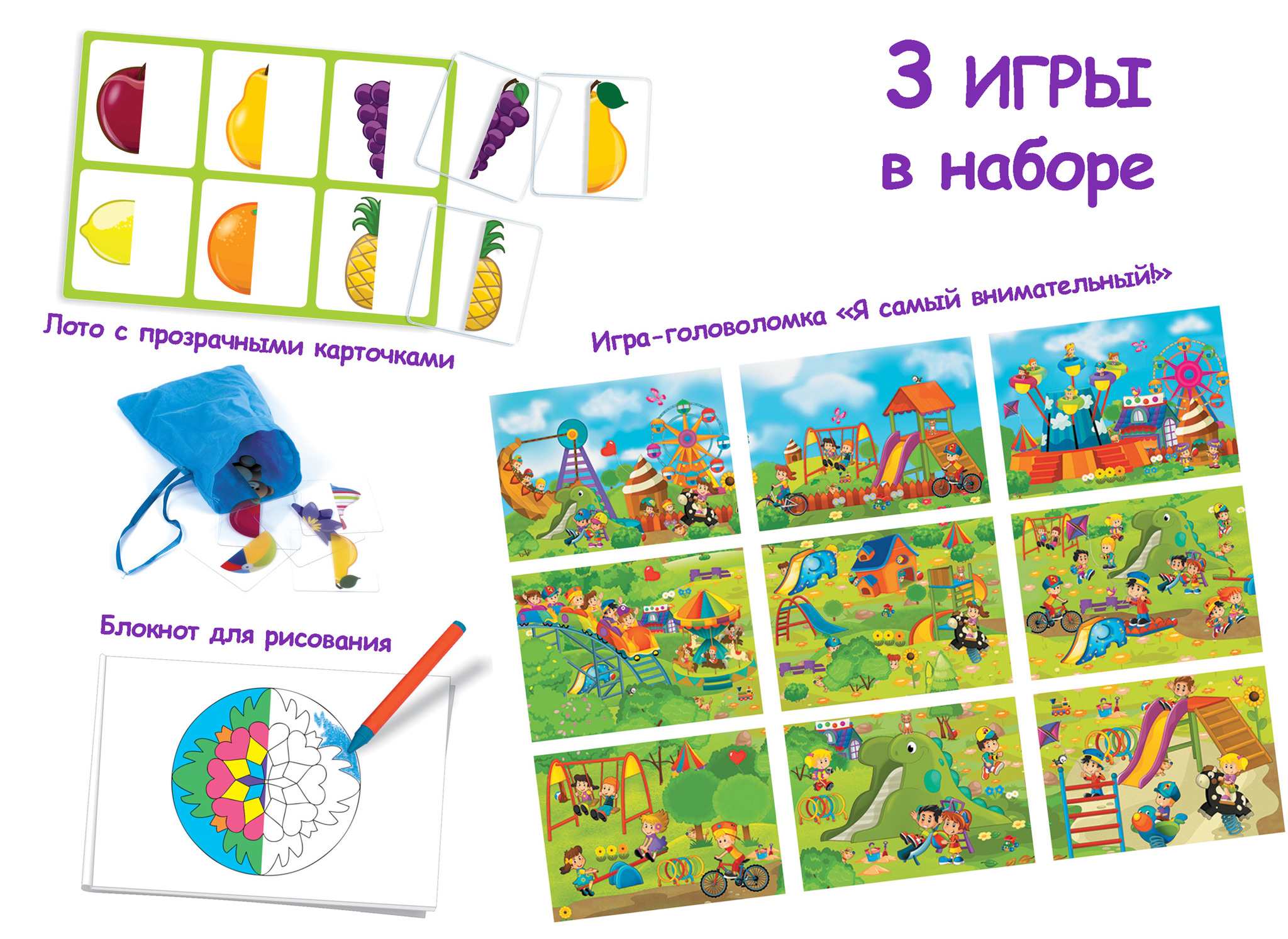 Играя в интеллектуальное лото, ребёнок учится сопоставлять часть и целое; узнаёт, что такое симметрия и асимметрия; развивает умение сравнивать и группировать. Выполняя задания игры?-головоломки, он тренирует внимание и память, воображение и речь, а используя блокнот для творчества - закрепляет полученные знания.