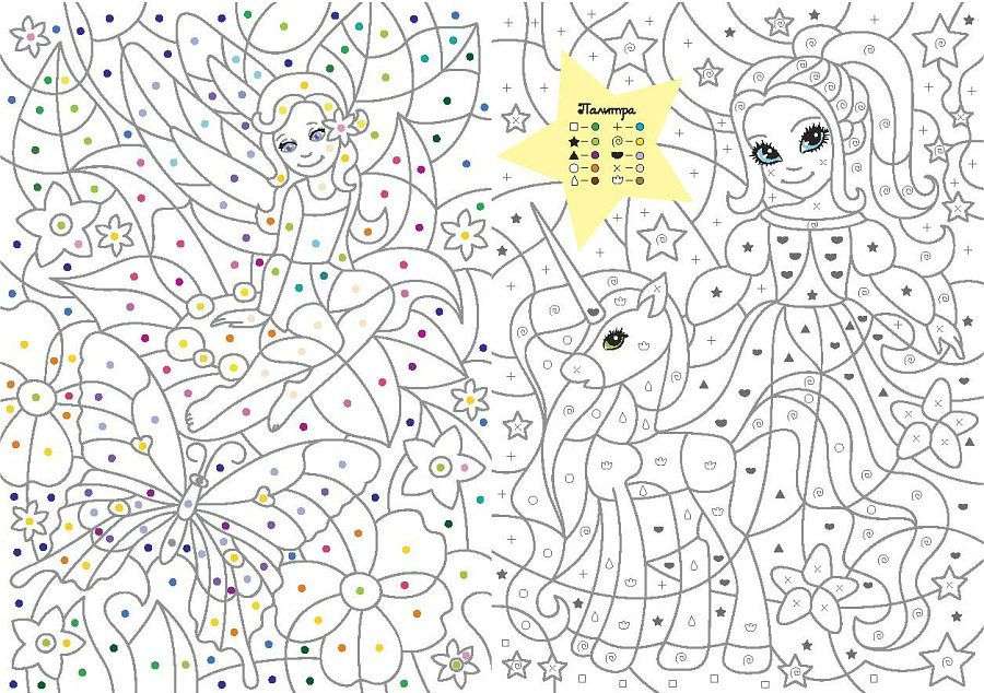В этой книге вы найдете и сможете раскрасить прекрасных принцесс, принцев, драконов, единорогов! А в садах около королевских замков вы увидите восхитительных легких фей в венках из цветов и волшебных птичек.