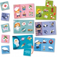 - Дети с интересом и весело проведут время, закрывая фишками 4 поля с атрибутами профессии и идентичными картинками.