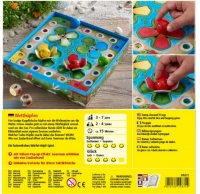 Комплектация: 1 коробка с 4 разделителями, 1 игровое поле, 16 лепестков кувшинки, 4 шарика-лягушки, 2 кубика, 1 комплект инструкций на английском, немецком, испанском, французском, итальянском и голландском языках.