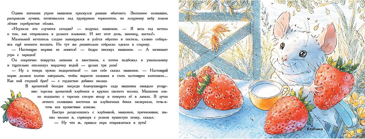 Книжка с картинками рассказывает добрую историю о маленьком Мышонке, который отправился в дальнее плавание. Потерев пальчиком рисунок, ребенок сможет почувствовать запах ароматизированных страниц.