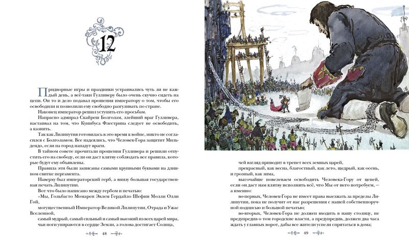 В книге представлен пересказ для детей двух самых интересных частей романа Джонатана Свифта: "Путешествие в Лилипутию" и "Путешествие в Бробдингнег". Великолепные иллюстрации выполнены известным художником Владимиром Шевченко.