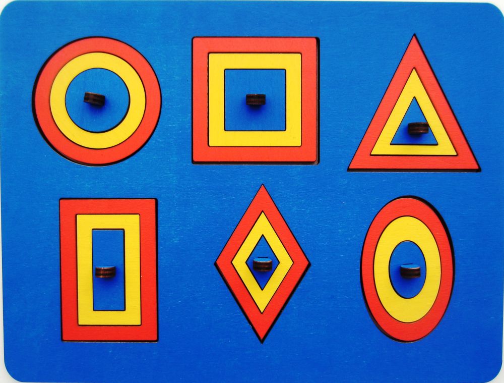 Рамки - вкладыши помогут изучить геометрические фигуры, размер (большой-маленький), разовьют глазомер и координацию движений рук.