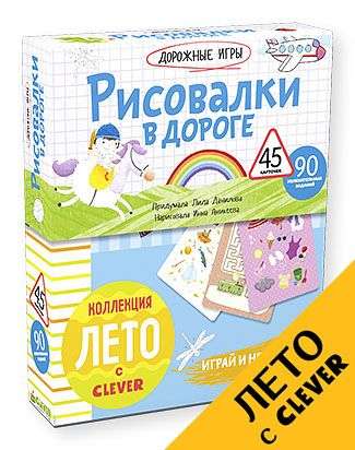 Займите юного художника веселыми творческими заданиями в поезде, самолете или машине! В удобной и красочной коробке вы найдете 45 двусторонних карточек и 90 самых разнообразных развивающих заданий. Ребенок с удовольствием будет разгадывать ребусы, раскрашивать, дорисовывать детали мозаик, находить сходства и различия, считать птенцов на ветке. Он и не заметит, как пролетит время в дороге!