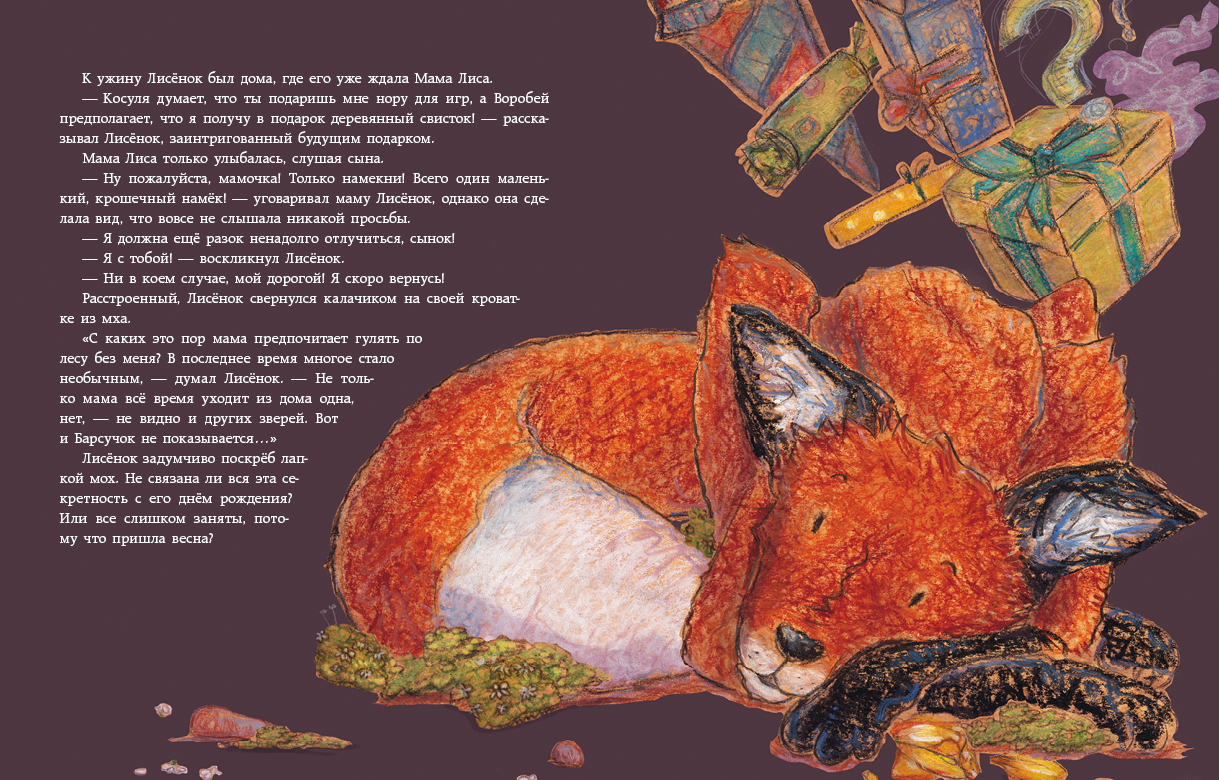 На этот раз Мама Лиса придумала для сына что-то необычное. Малышу так любопытно, что он не может удержаться и вместе со своими друзьями гадает, что же это будет. Звери делают самые невероятные предположения! Прочитав эту книгу, юные читатели узнают, какой всё-таки подарок получит Лисёнок.