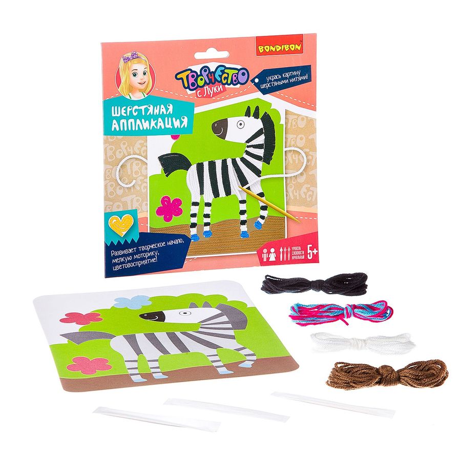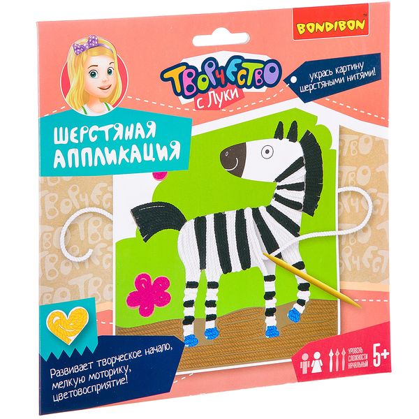 В набор входит самоклеящаяся цветная основа для картины, набор шерстяных нитей, деревянные палочки. Создание аппликаций из разнообразных материалов способствует развитию творческого начала, мелкой моторики и цветовосприятия.