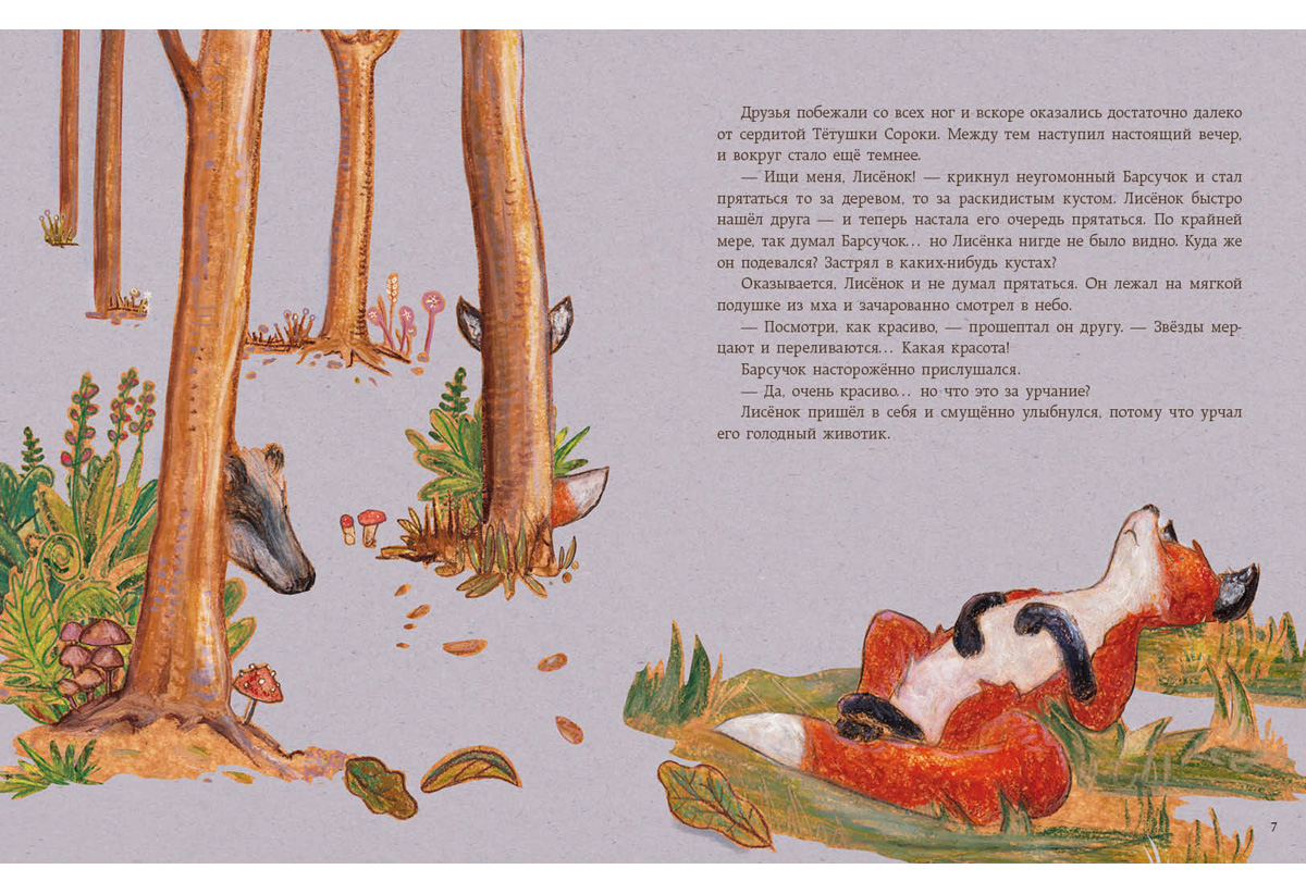 Где и как спят лесные звери? И видят ли они сны? Ночью в лесу становится таинственно и тихо, а потому любопытный Лисёнок уходит из норы навстречу удивительным приключениям.