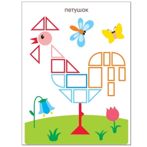 Не стоит давать малышу конкретных инструкций, лучше предоставить ему свободу действий, возможность самому разобраться, как лучше расположить фигуры и украсить картинку.