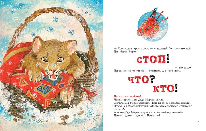 Каких только чудес не случается в заснеженном новогоднем лесу! Даже сам Дед Мороз глазам не поверил, когда обнаружил в корзине на тропинке? настоящего львёнка! Дед Мороз решает помочь малышу и берёт его с собой?
