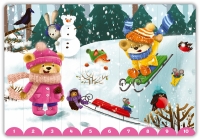 - 20 ярких и красочных картинок с изображениями забавных медвежат, разделенных на 10 пронумерованных частей-полосок, выдержанных в общей цветовой гамме. Для того чтобы получилась картинка, нужно сложить все части-полоски с цифрами по порядку – от 1 до 10.