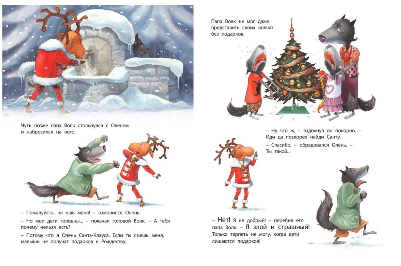 В рождественскую ночь нет ничего невозможного, чудеса случаются на каждом шагу. И все потому, что накануне праздника у всех в душе просыпаются самые лучшие и добрые чувства. В Рождество даже злой и страшный волк вдруг стал добрым и отзывчивым!