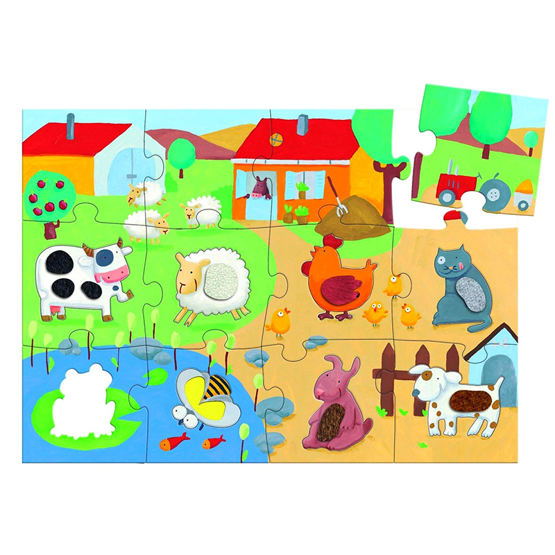 Тактильный пазл-гигант Ферма от французского производителя Djeco (Джеко) может стать самым первым и самым любимым пазлом Вашего малыша. В раннем возрасте особо важны тактильные ощущения, которые играют особую роль в познании мира, опережая другие способы восприятия.