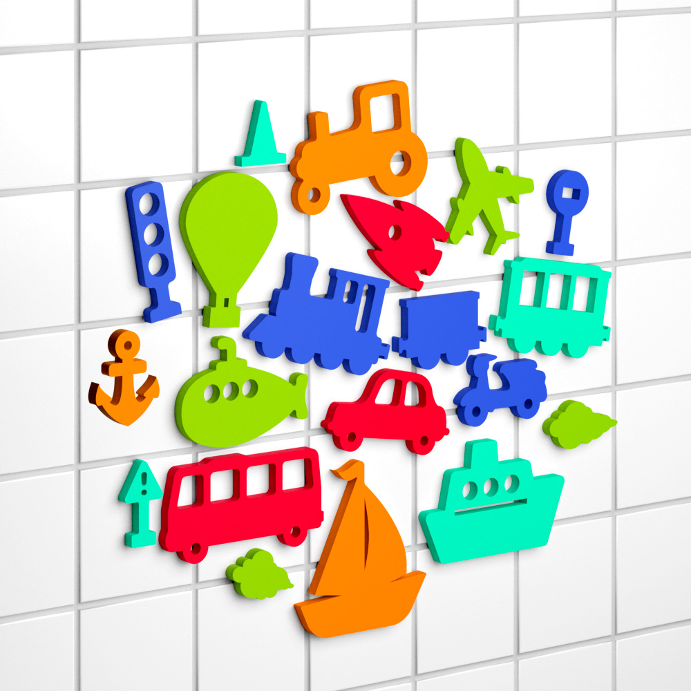 Набор фигурок для игры в ванной в виде транспортных средств из мягкого и экологичного материала ЭВА. Транспорт при смачивании легко прилипает к любой гладкой поверхности. Игра поможет малышам запомнить транспортные средства и сделает процесс принятия водных процедур веселым и увлекательным.