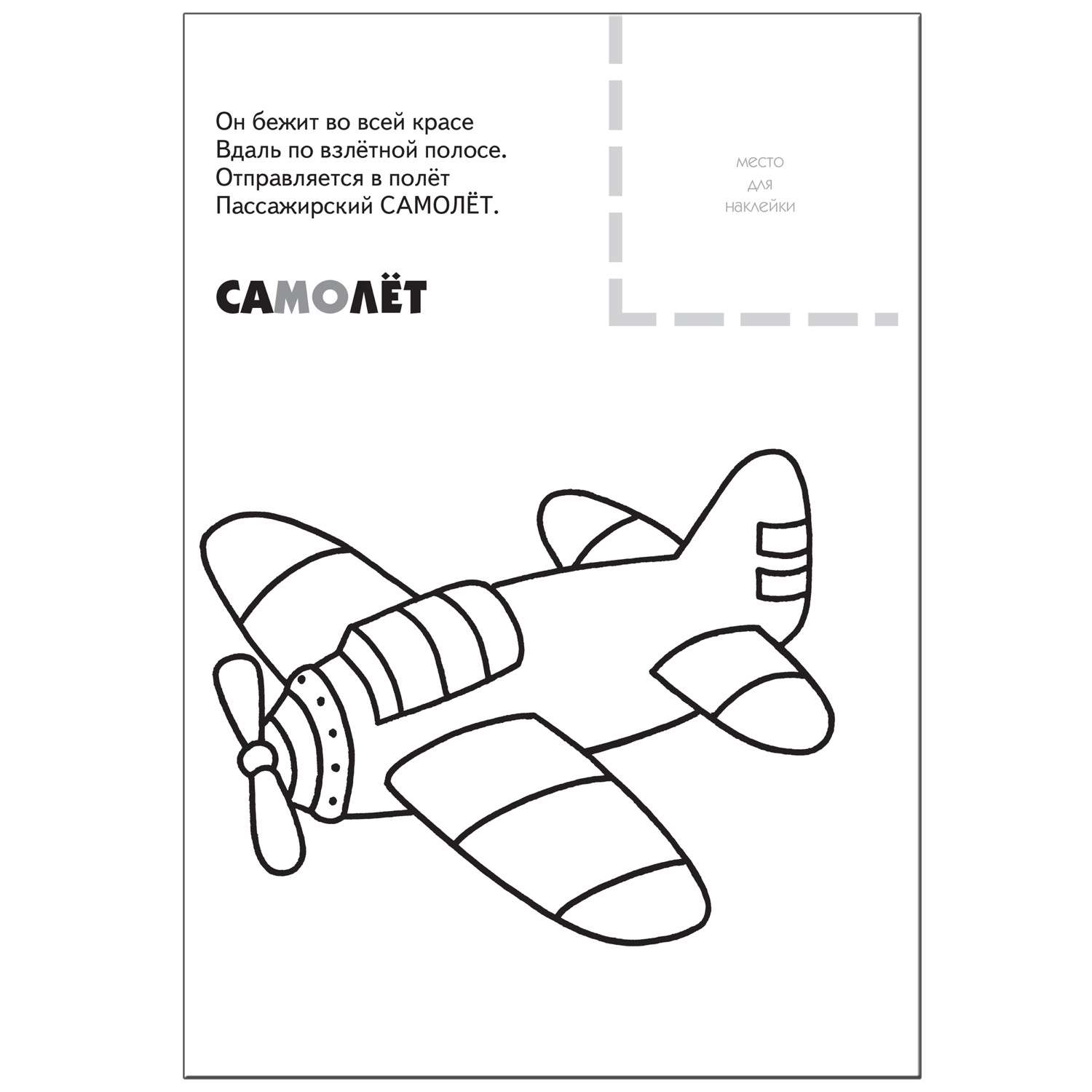 Сверху - небольшое четверостишие о персонаже, рядом - место для наклейки, а под стихотворением - непосредственно раскраска.