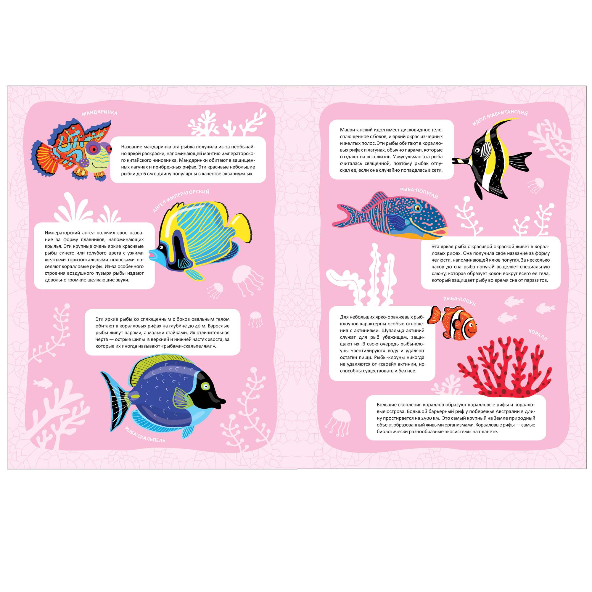 Маленький путешественник узнает много интересного об этой природной зоне и познакомится с ее обитателями. Помимо множества занимательных фактов внутри книги малыша ждет сюрприз – большая панорамная иллюстрация с изображением подводного мира.