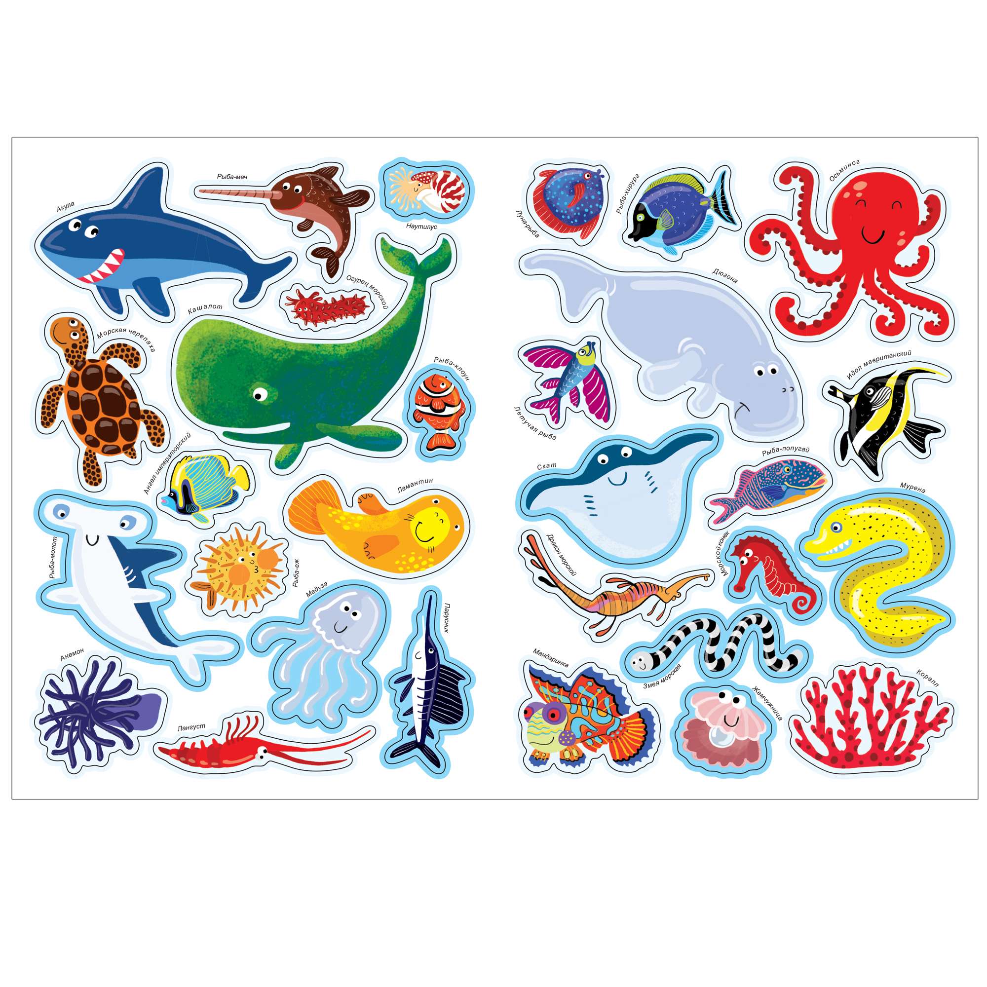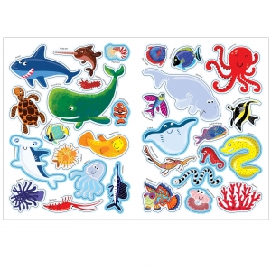 Дополняя ее яркими многоразовыми наклейками – морскими обитателями, он не только закрепит новые знания, но и создаст красочный плакат, которым можно украсить стены комнаты.