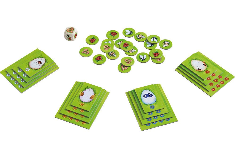 Ах, что там вылупилось? Четверо маленьких нахальных цыплят выбираются из скорлупы, и у них огромный аппетит. Только одно поможет - еда! Но будьте осторожны. Бросок кубика будет определять, что можно кормить цыплят и как быстро они будут расти. Кто из них первым вырастет в величественную маленькую птицу?