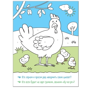 Внутри малыша ждут пушистая овечка, резвая лошадка и другие очаровательные обитатели деревни, а также веселые загадки, которые не оставят его равнодушным и превратят процесс раскрашивания в увлекательную игру.