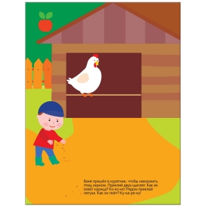 На ярких страницах этой книги малыш встретит котенка, щенка, жеребенка, теленка, цыплят и других обитателей деревни, побывает в огороде, в саду, на птичьем дворе, на пруду, узнает, кто пасется на лугу.