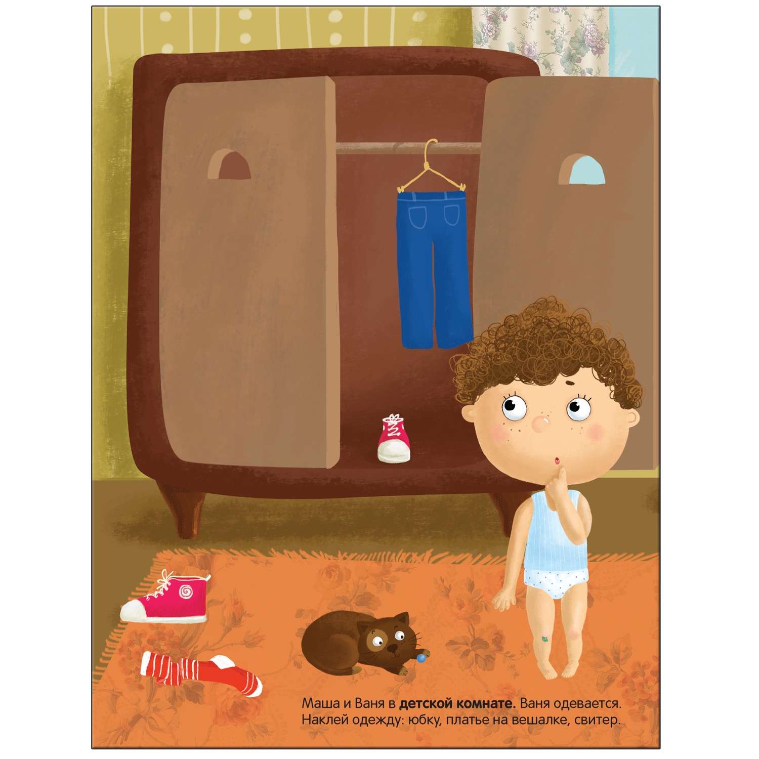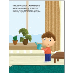 Приклеивая яркие наклейки в нужное место, ваш малыш побывает в доме – в кухне, прихожей, ванной и других комнатах, познакомится с такими понятиями как посуда, одежда, обувь и мебель.