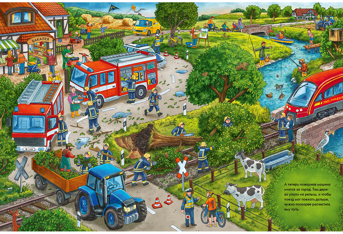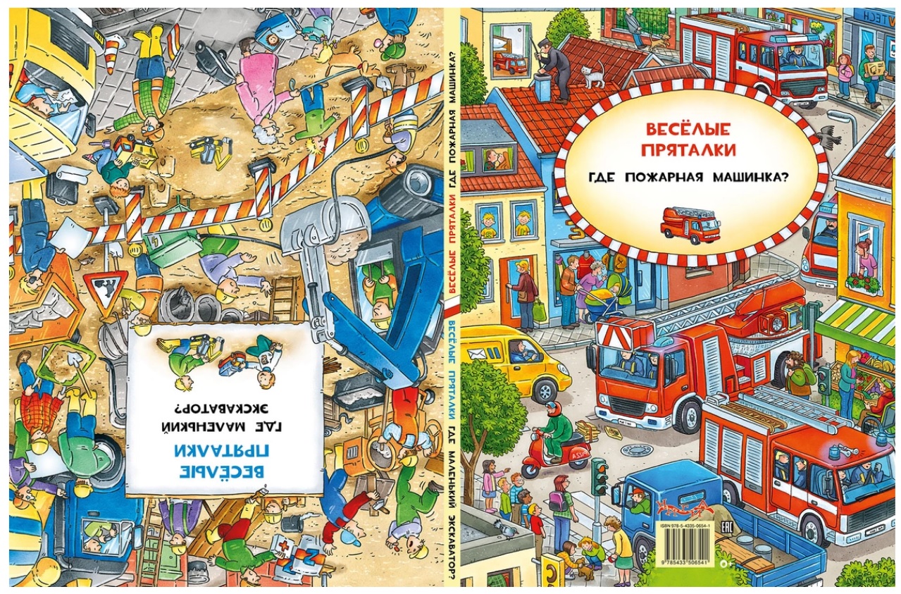На каждой странице книги спрятана игрушечная пожарная машина. Сможешь её найти?